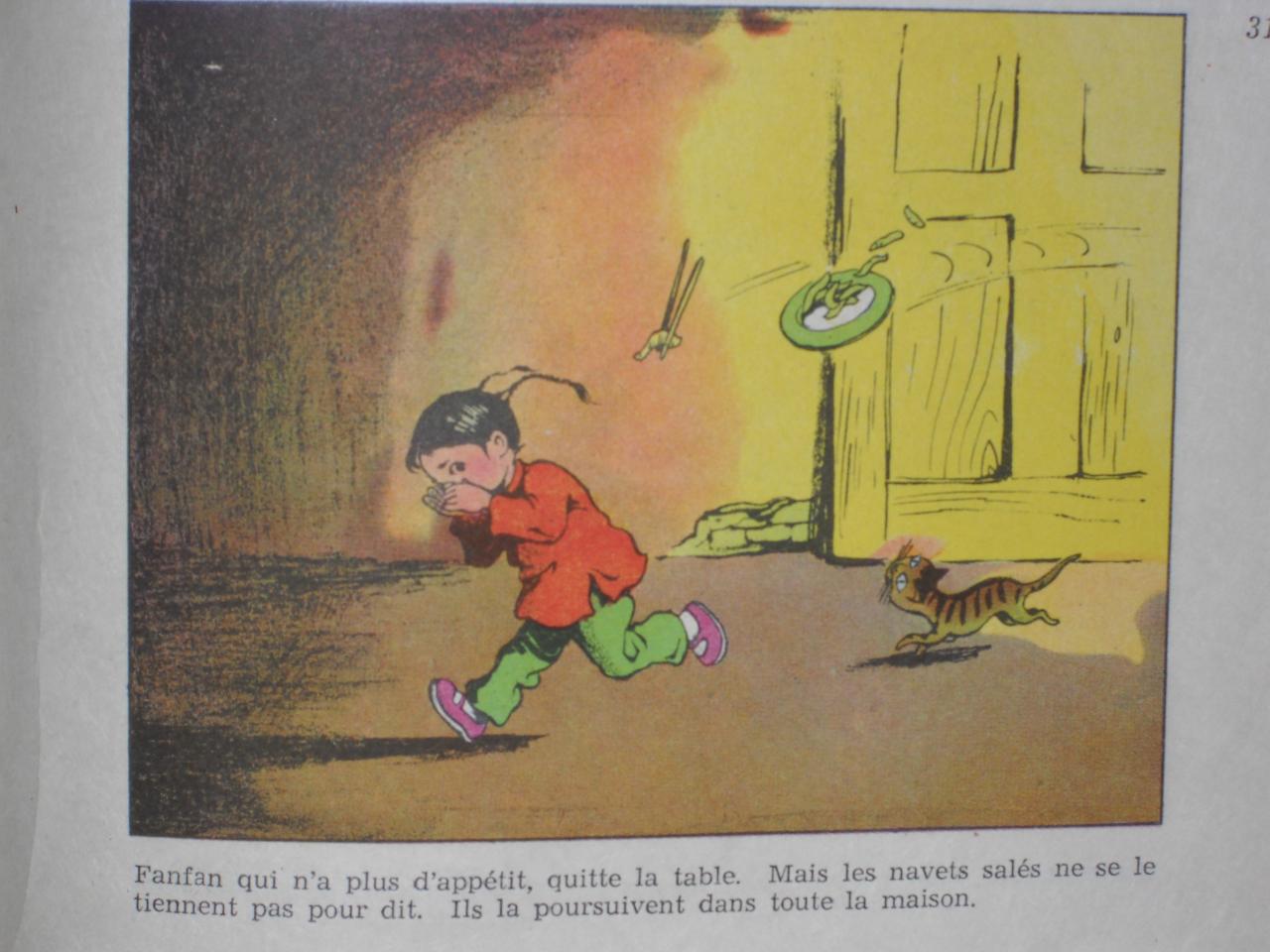 Les albums chinois proposent aussi en traduction des enfants punis pour leur paresse ou leur rêverie.