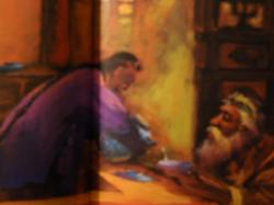 C- Le réhors s'endort et le vieillard apparait pour lui remettre un pinceau.