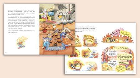 - Vous nous proposez un album avec un vrai texte, laissant la place à la création d’un univers avec de nombreux personnages. Comment est née cette histoire de Rickie Raccoon, comment avez-vous travaillé entre le texte et le dessin ? Quel thème souhiatez-vous développer?