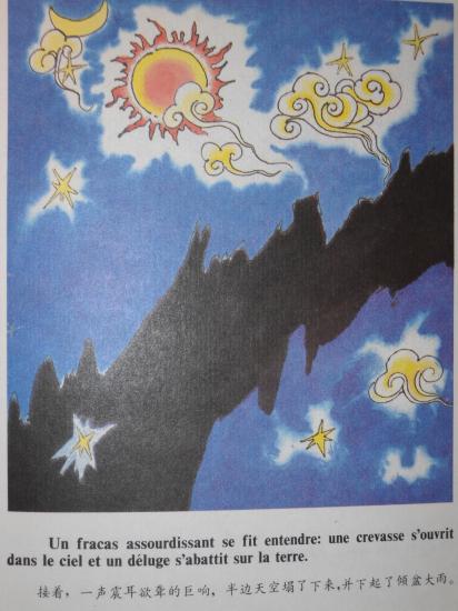 "LA REPAARTION DE LA VOUTE CELESTE" / adapt. Feng Jiannan ; ill. Mao Shuixian Ed. livres du dauphin, 1989