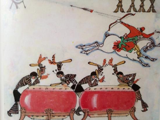 Chunyu Fen se met alors à décocher des flèches qui atteignent toutes le disque rouge en plien centre de la cible. De chaque côté, les soldats battent énergiquement le tambour pour l'necourager de plus belle.