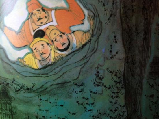 Chunyu Fen cherche, avec ses amis, sous le vieux sophora, la caverne de son rêve. Ils y trouvent, en effet, un trou.